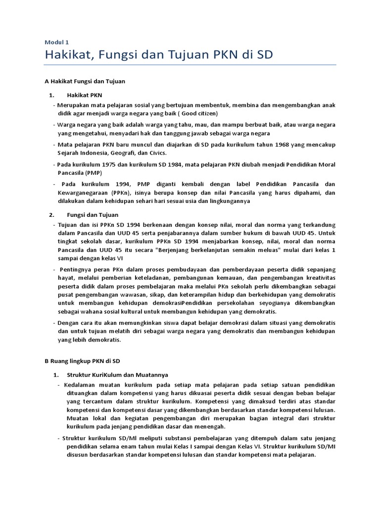 Modul 1 Hakikat Fungsi Dan Tujuan Pendidikan Kewarganegaraan Di Sd Wahyudiansyah