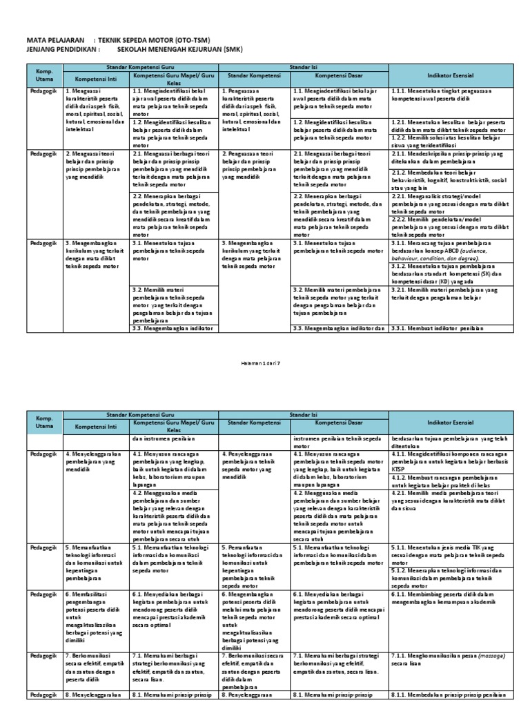 Pdf Halaman 1 Dari 7 Mata Pelajaran Teknik Sepeda Motor Oto Tsm Jenjang Pendidikan Sekolah Menengah Kejuruan Smk Bambang Kristianto Academia Edu