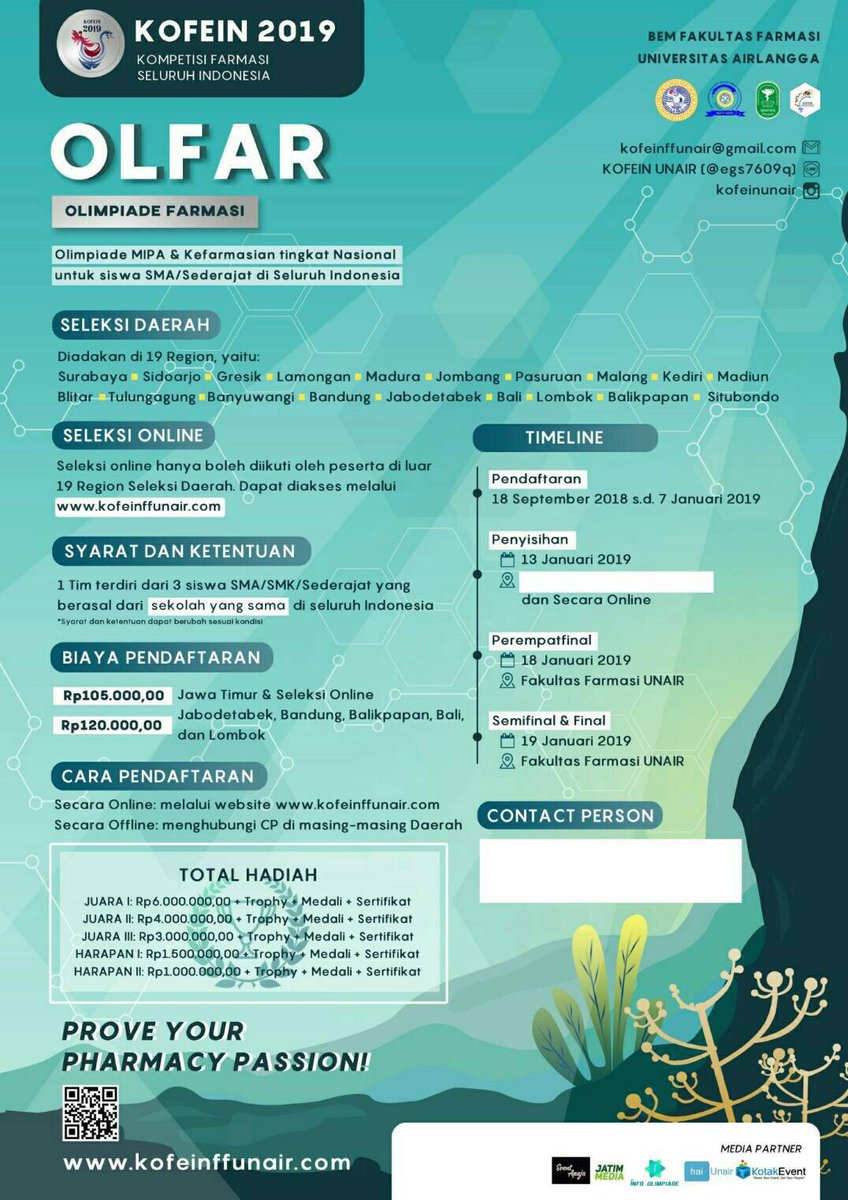 Hai Unair On Twitter Olfar Kofein 2019 Pendaftaran Olimpiade Farmasi Resmi Dibuka Pendaftaran Dapat Dilakukan Secara Online Melalui Web Kofein Https T Co Ztldjgceys Pendaftaran Olfar Akan Ditutup Pada Tanggal 11 Januari 2019 Jadii