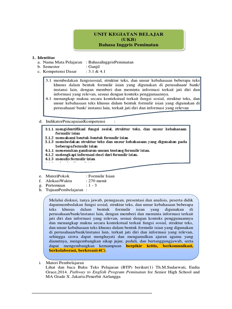 Ukbm Sastra Inggris X Kd 3 1 4 1 Formulir
